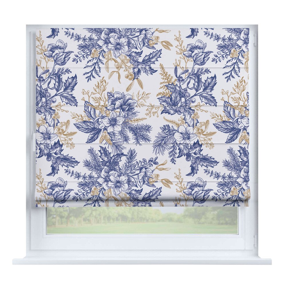 Римская штора на створку ткань вельвет васильковый, карниз верёвочный